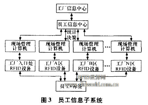 員工信息子系統(tǒng)如圖3所示,可以方便地實(shí)現(xiàn)員工出入工廠管理,考勤數(shù)據(jù)采集、統(tǒng)計(jì)和信息查詢以及廠區(qū)定位等功能。從管理層的角度考慮,簡(jiǎn)化了管理結(jié)構(gòu),提高。廠管理的集中度,使管理層能夠集中、全面和隨時(shí)了解員工的有關(guān)情況。另外,分散的靜態(tài)手工資料向集中的動(dòng)態(tài)化信息資料的轉(zhuǎn)化,提高了管理層次,改善丫管理效率,也為工廠的事后稽查、個(gè)體員工考察和整體人力資源政策的制定提供了參考依據(jù)。