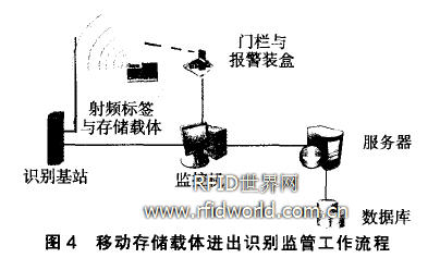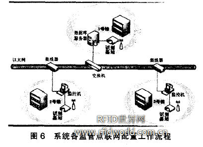 (2)由識(shí)別基站設(shè)備掃描到無(wú)線標(biāo)識(shí),信號(hào)通過(guò)監(jiān)控機(jī)傳輸?shù)椒?wù)器;