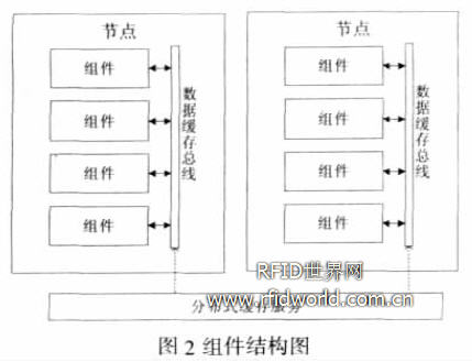 為了解決這些問題, 我們將集群技術(shù)應用到中間件中來。RFID 中間件是基于組件的形式開發(fā)的,因此系統(tǒng)可以粗略的劃分為2 個部分:數(shù)據(jù)和組件。對于數(shù)據(jù),我們可以利用集群的分布式數(shù)據(jù)管理模塊來處理, 通過分布式緩存服務形成同一的數(shù)據(jù)視圖,使得每個節(jié)點都可以訪問到其他節(jié)點的數(shù)據(jù);通過復制緩存服務為每一個數(shù)據(jù)在不同節(jié)點產(chǎn)生一個備份, 使得數(shù)據(jù)具有高可靠性和高可用性。對于組件,我們通過組件調(diào)度策略是把所有的組件分配到不同的節(jié)點去, 以實現(xiàn)系統(tǒng)的高擴展性和高性能。
