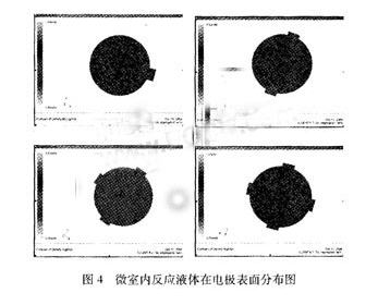 對于電流型免疫傳感器,其免疫反應和電化學反應主要發(fā)生于中心圓形工作電極區(qū)域。在微小的反應空間內,如果修飾溶液、待檢測樣品、清洗液等試劑能夠以工作電極圓心為中心,在圓形電極表面均勻和對稱的流動和分布來參與反應,在敏感膜固化的過程中將能夠提高生物敏感膜固化過程的一致性,從而保證生物敏感膜的質量。在免疫反應過程中將能夠促進敏感膜表面抗原抗體之間免疫反應的均一性,同時促進敏感表面電化學反應發(fā)生的一致性,從而提高傳感器的響應速度并增大信號響應。在清洗的過程中能夠增加電極敏感表面清洗的潔凈性和一致性,減少非特異性信號干擾給傳感器檢測所帶來的偏差,增加檢測的穩(wěn)定性和一致性。同時可以避免因反應液局部密集所帶來的電流生成不均,避免敏感膜表面受力不均產生的局部脫落等問題。