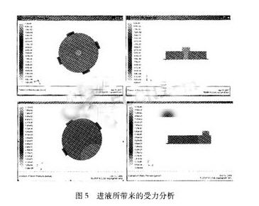 檢測過程中應考慮液體輸入微反應室時對工作電極表面敏感膜及室壁產生的力的作用,因為力的作用不當會產生敏感膜脫落的現(xiàn)象。實驗過程中通過合理地設計選擇進液口位置來優(yōu)化力的分布,減少對敏感膜表面產生的沖擊。在設計的4種結構中,對進液口位置的選擇分成中心處和邊緣處兩種,兩種結構的壓力分布圖對比如圖5所示。在進液管道附近,液體產生較大的力的作用,而將進液口從反應區(qū)域正上方移至邊緣處,其產生的力會在中心敏感區(qū)域外圍被電極周邊區(qū)域和富有彈性的PDMS室壁緩沖而減弱,不會影響到敏感膜生成區(qū)域,較好地解決了進出液對敏感膜可能造成的損害問題;而在中心開口的兩種結構位于敏感反應區(qū)上方,如圖可見試劑輸人時會有力作用于中心處,特別是當液體輸入速度較高時,會對敏感膜造成損傷。