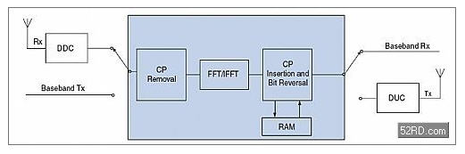 FFT與FFT反變換:在OFDM調(diào)制中最關(guān)鍵的運算就是IFFT,相類似,OFDM解調(diào)的核心為FFT。寬帶系統(tǒng)中的高FFT吞吐率是至關(guān)重要的,尤其是在FFT被多路數(shù)據(jù)通道共享時。