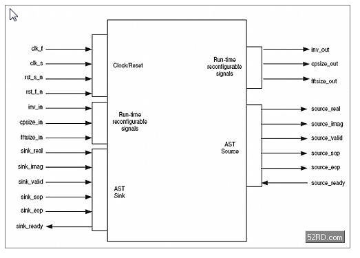 接口和I/O端口:該設計實例使用了數(shù)據(jù)傳輸控制的Avalon Streaming協(xié)議。為了支持大小可變的FFT size、循環(huán)前綴,以及FFT方向運行時間(run time)的變化,必須對這些run time信號進行緩沖并把它們與輸出數(shù)據(jù)數(shù)據(jù)包開始(SOP)信號對齊。
