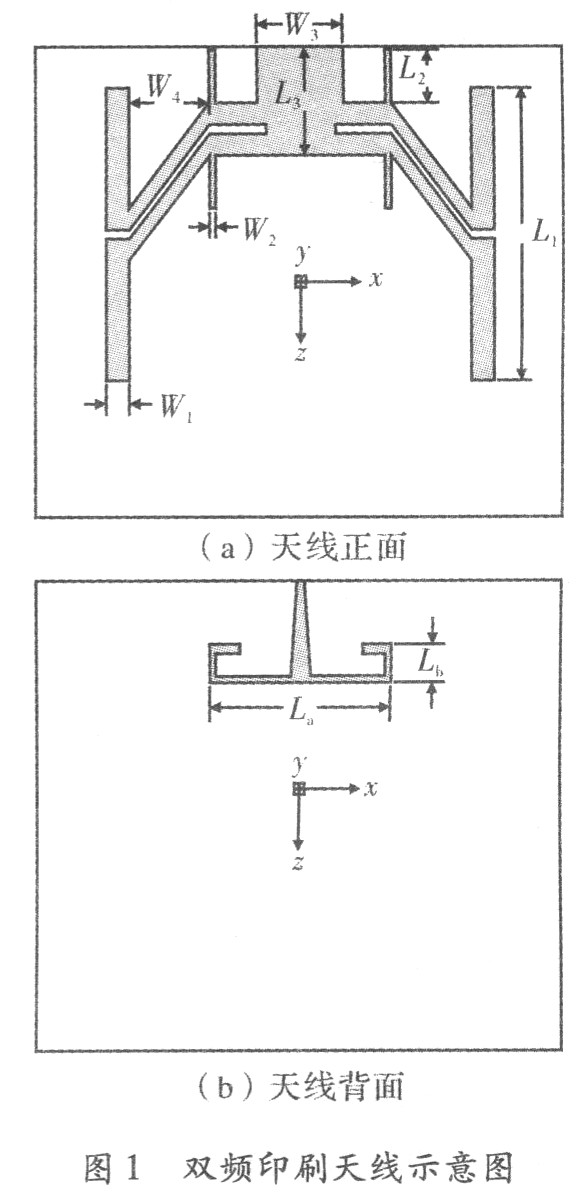 設(shè)計的雙頻天線結(jié)構(gòu),如圖1所示。