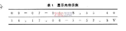 在本系統(tǒng)中,采用通甩LCD液晶模塊1602實現(xiàn)對實時時間、設(shè)定溫度、實時溫度及存儲溫度的顯示。該液晶顯示器為16字×2行的字符型液晶模塊,以其微功耗、體積小、顯示內(nèi)容豐富、超薄輕巧的諸多優(yōu)點,在各類儀表和低功耗系統(tǒng)中得到廣泛的應(yīng)用。具體顯示格式為年-月-日;S為溫度上限-溫度警戒限,示例如表1所示。