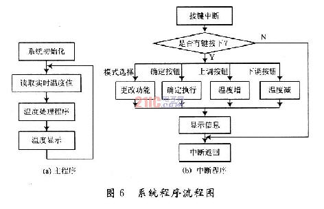 MSP430采用C語言開發(fā)環(huán)境,大大提高了軟件的開發(fā)的工作效率,提高了程序的可靠性、可讀性及可移植性。主程序與中斷程序流程如圖6所示。