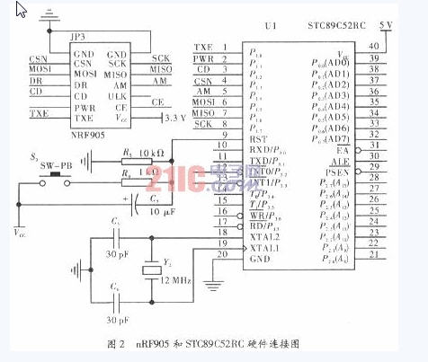 4 nRF905和STC89C52RC的硬件連接電路