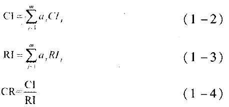 為了評(píng)價(jià)層次總排序的計(jì)算結(jié)果的一致性,類似于層次單排序,也需要進(jìn)行一致性檢驗(yàn)。為此,需要
