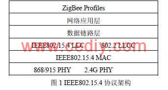 IEEE無線個人區(qū)域網(wǎng)工作組的 IEEE802.15.4技術(shù)標(biāo)準(zhǔn)是 ZigBee技術(shù)的基礎(chǔ)。 IEEE802.15.4滿足國際標(biāo)準(zhǔn)組織( ISO)開放系統(tǒng)互連(OSI)參考模式。它定義了單一的 MAC層和多樣的物理層(如圖 1所示)。802.15.4標(biāo)準(zhǔn)旨在為低能耗的簡單設(shè)備提供有效覆蓋范圍在 10-75米的低速連接, IEEE802.15.4定義了兩個物理層標(biāo)準(zhǔn),分別是 2.4GHz物理層和 868/915GHz物理層[2]。2.4GHz波段為全球統(tǒng)一的無需申請的 ISM頻段,有助于 ZigBee設(shè)備的推廣和生產(chǎn)成本的降低。 2.4GHz的物理層通過采用高階調(diào)制技術(shù)能夠提供 250kbps的傳輸速率,有助于獲得更高的吞吐量、更小的通信時延和更短的工作周期。主要適合用于自動控制和遠(yuǎn)程控制領(lǐng)域,可以嵌入各種設(shè)備。