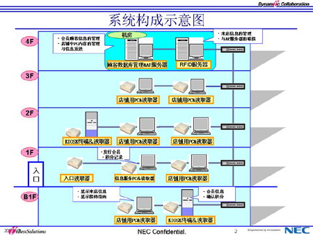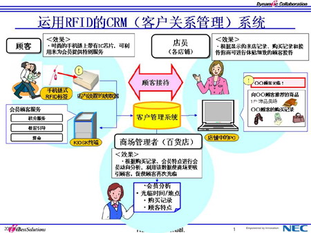 ■對將來的展望 該系統(tǒng)將從上海推廣至全中國、日本、乃至全世界。 提供一體化解決方案的客戶關(guān)系管理(CRM)系統(tǒng) 該客戶關(guān)系管理(CRM)系統(tǒng)現(xiàn)在已經(jīng)完成了基盤,今后系統(tǒng)的活用和發(fā)展上蘊藏著極大前景。 另外,關(guān)于系統(tǒng)自身未來的發(fā)展形式,規(guī)劃其能實現(xiàn)更多服務(wù),如將顧客來店的信息通知給經(jīng)理和店長等、以便采取適當?shù)膶?yīng);實現(xiàn)與使用郵件、Web網(wǎng)等形式的顧客的溝通;向顧客家里或是手機上發(fā)送PR信息或是寄發(fā)優(yōu)惠券等。 此外,作為系統(tǒng)的下一期的開發(fā)模式,從百貨商店經(jīng)營的角度,與商品調(diào)撥/庫存管理系統(tǒng)、財務(wù)系統(tǒng)、人事系統(tǒng)等主要系統(tǒng)的聯(lián)接和擴充也在籌劃中。 NEC及各合作公司將把該客戶關(guān)系管理(CRM)解決方案產(chǎn)品化后進行推廣。 柴崎先生說:“希望從‘上海婦女用品商店’的百聯(lián)集團到其他企業(yè),從上海到中國、日本,這樣更廣泛的推廣開來”。對于這個系統(tǒng)在全球的推廣夢想,弦本先生說:“這個系統(tǒng)從將成為世界經(jīng)濟中心的上海開始,有其深遠的意義,希望這個系統(tǒng)今后能在全球推廣開。”另一方面,在系統(tǒng)的構(gòu)筑上發(fā)揮了重要作用的渡邊先生說:“考慮把在中國市場實踐的數(shù)據(jù)市場,連同NEC一起,在日本國內(nèi)市場進行展開。”大西先生也說“希望和NEC一起開發(fā)先進的應(yīng)用軟件,把解決方案推廣開來。” |
