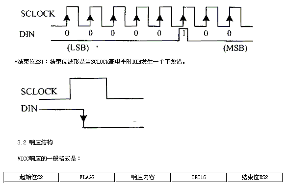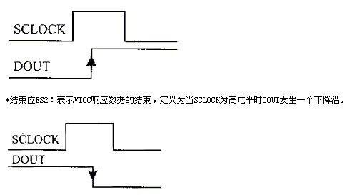 *起臺位S2:表示VICC響應數據的開始,定義為當SCLOCK為高電平時DOUT發生一個上升沿。