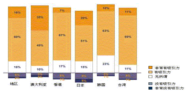 圖2 VISA對(duì)亞太部分國(guó)家和地區(qū)關(guān)于IC卡多應(yīng)用的調(diào)查
