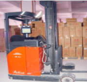進(jìn)貨:當(dāng)貨物通過(guò)進(jìn)貨口傳送帶進(jìn)入倉(cāng)庫(kù)時(shí),每托盤貨物信息通過(guò)進(jìn)貨口讀寫器寫入托盤,然后通過(guò)計(jì)算機(jī)倉(cāng)儲(chǔ)管理信息系統(tǒng)運(yùn)算出貨位,并通過(guò)網(wǎng)絡(luò)系統(tǒng)將存貨指令發(fā)到叉車車載系統(tǒng),按照要求存放到相應(yīng)貨位。